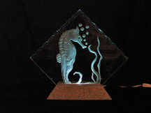 – Carved glass sculpture – Carved & lighted glass sculpture –