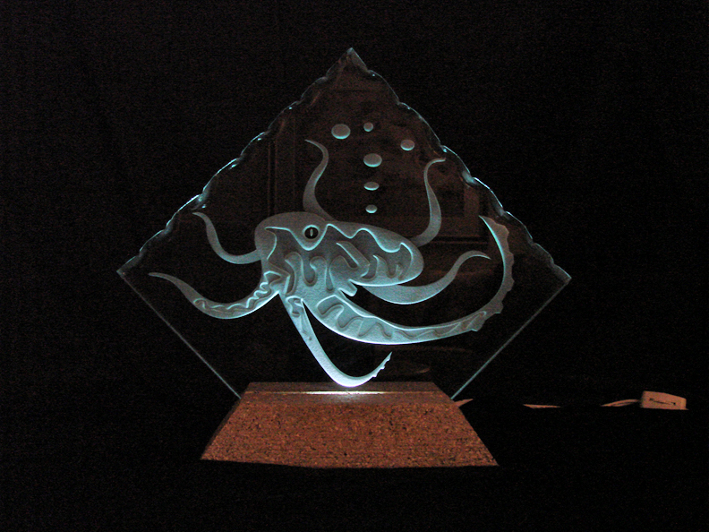 – Carved glass sculpture – Carved & lighted glass sculpture –